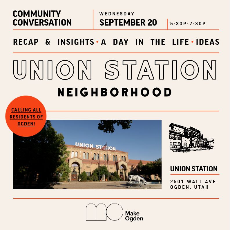 Since February, the 4th Wednesday of every month has been reserved for “You MAKE Ogden” public engagement events, hosted by Ogden City Economic Development staff, inside historic Ogden Union Station. These educational opportunities and discussions highlight the overall downtown development plan, known as MAKE Ogden, unanimously approved by the Ogden City Council in 2020. This comprehensive plan includes details on Episodic events aimed at catalyzing development in downtown Ogden through projects like WonderBlock, Union Station Neighborhood, and Electric Alley. MAKE Ogden also details housing goals, design standards, growth framework, metrics, and much more. “You MAKE Ogden” is an opportunity to talk with city staff face-to-face, hear updates, ask questions, and provide feedback. The 7th “You MAKE Ogden” event will offer an informal open house format and is set for September 27th from 5:30-7:00 pm.As mentioned, Union Station Neighborhood is a piece of the MAKE Ogden framework. Development partners J. Fisher Companies and McWhinney, two companies selected to refresh and redevelop the Union Station Neighborhood, host their own community conversations to provide community members the opportunity to speak directly to the project developers. The September 20th Union Station Neighborhood conversation will focus on the theme – “A Day in The Life” - asking residents to detail what they hope to see at Union Station. RSVP here https://www.unionstation-ogden.com/#economicdevelopmentent#adaptiveereuse#catalyst